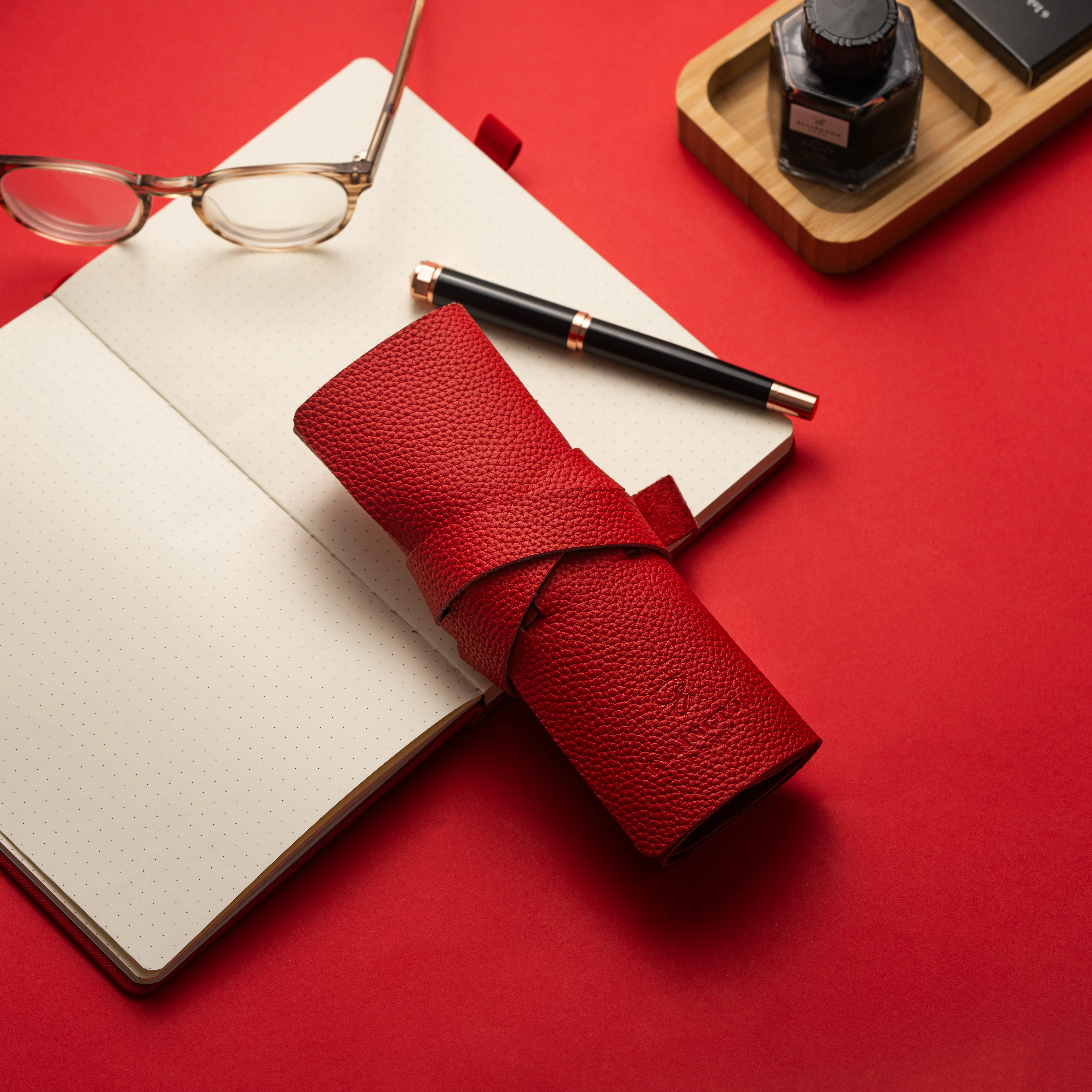 Leather Roll Pen Case Red